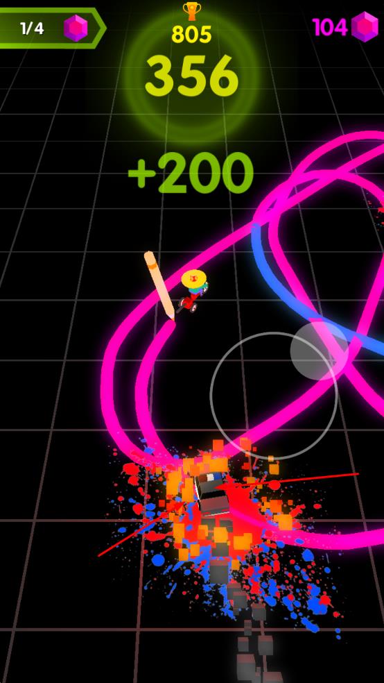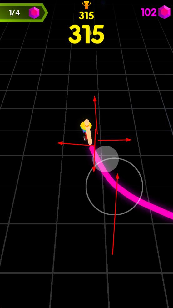 1、操控角色沿路径绘制彩色线条,通过滑动操作改变绘制方向,积累分数推进游戏进程。