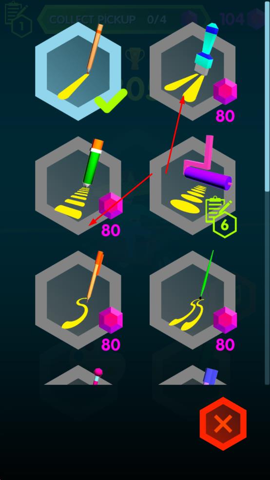 3、在工具选择界面,消耗80个紫色道具可解锁新绘图工具,不同工具带来独特绘制效果,助力高分挑战。