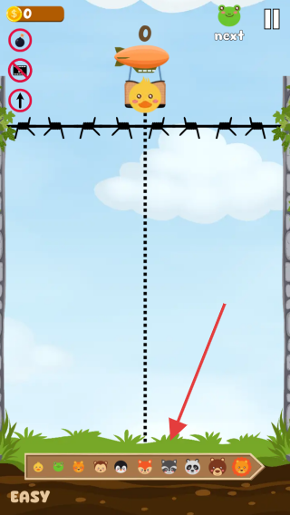 3、在游戏过程中,通过操作使上方动物掉落至下方对应位置,完成动物合并等任务,推进游戏进程。