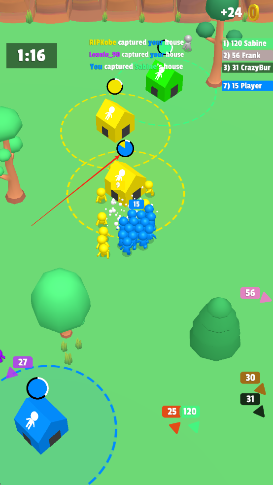 3、在游戏时间结束之前,保持自己占领的地盘数量占领第一的位置,即可获得丰厚奖励。