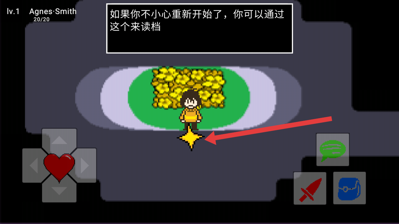 1、靠近角色脚下黄色星星,触发读档的提示,需要了解重开后可以通过读档恢复进度。