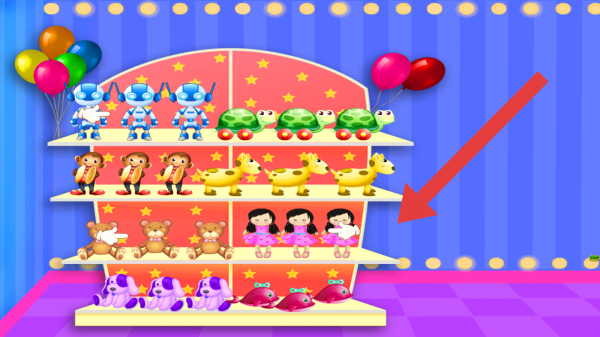2、呈现了置物架的场景,需要玩家清理上面的灰尘并进行归类,可根据提示进行操作。