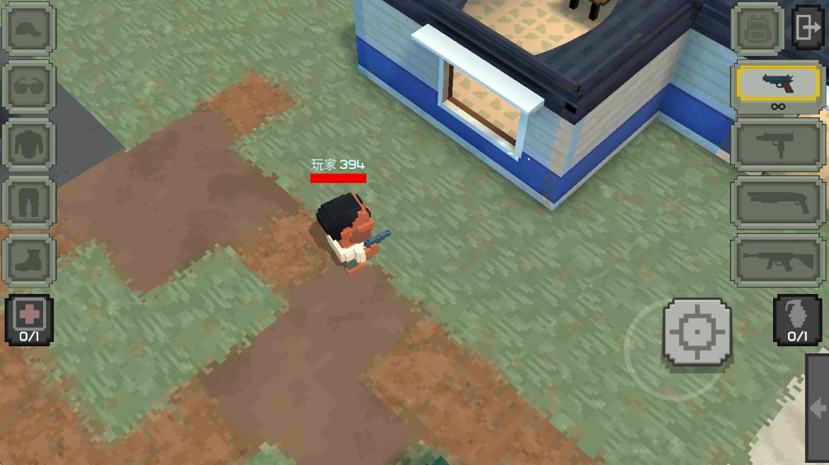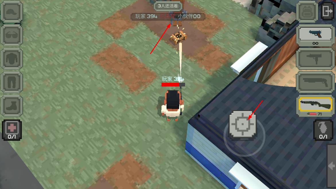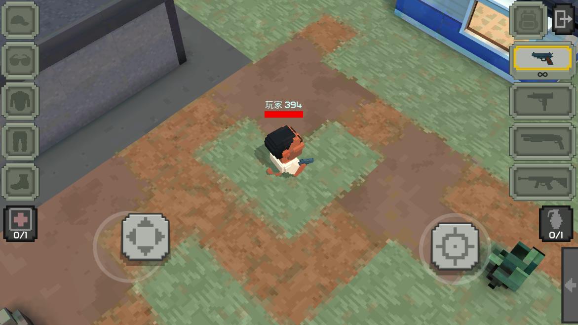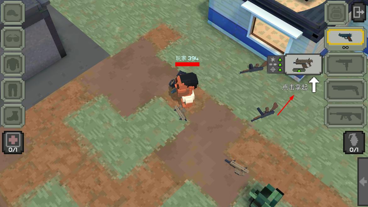 1、进入游戏后选择匹配模式,落地后快速搜索建筑拾取枪械、弹药和防具,熟悉像素地图中的资源分布与地形特点。