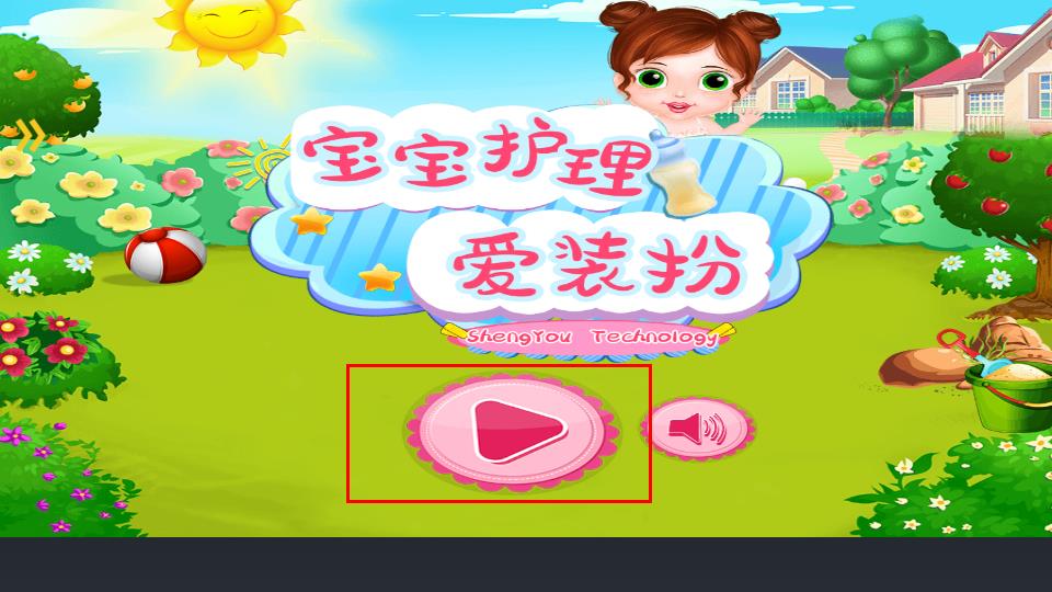 1、需要在主界面点击粉色播放按钮,进入游戏,背景为花园场景,玩家就可以正式进去开始给宝宝护理装扮。