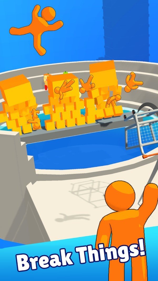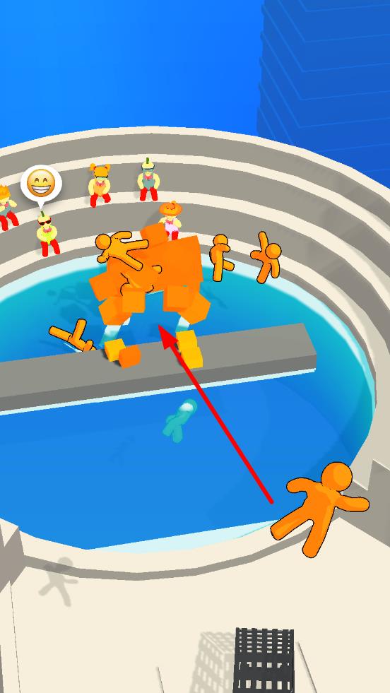 2、集满人群后进入竞技场,将小车上的人群全都往前推,撞开前面的方块墙面,座位上的观众会给出评分。