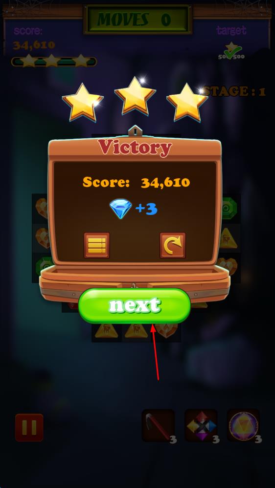 1、进入灵异庄园,跟随剧情开启首个三消关卡,通过匹配3个及以上相同元素完成消除,解锁鬼宅的初始区域与故事片段。