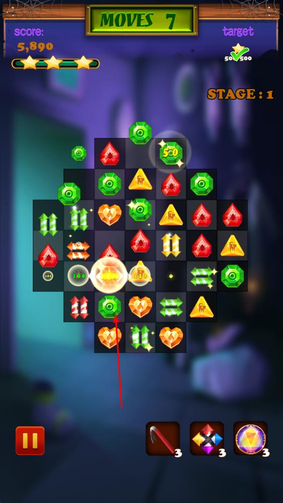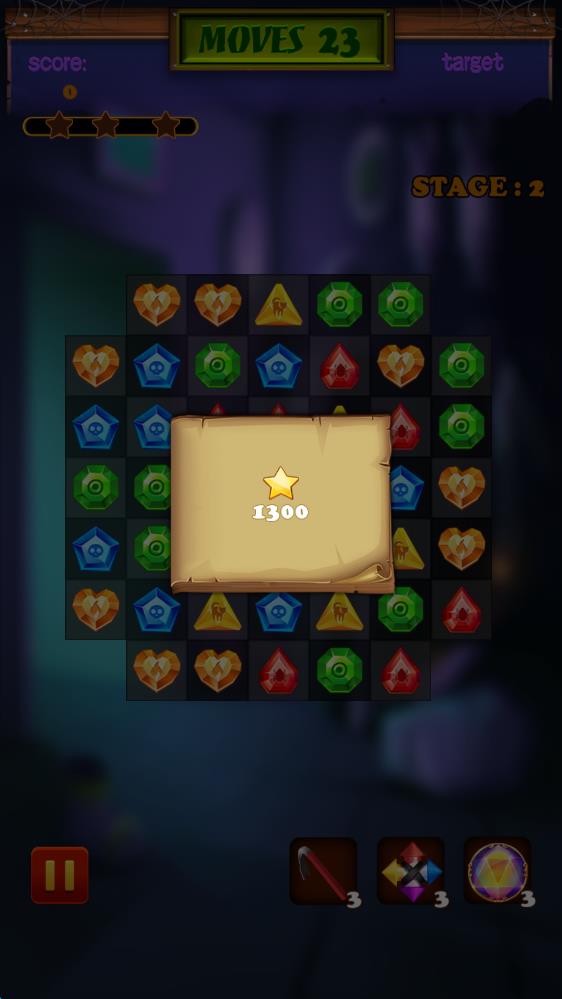 1、三消谜题破解:通过匹配3个及以上相同元素完成消除,达成关卡目标,解锁鬼宅新区域与剧情,积累道具资源。