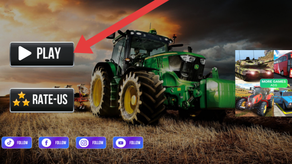1、画面呈现了一辆拖拉机,点击PLAY方可进入场景进行游玩,还有其余图标根据需求进行点击。
