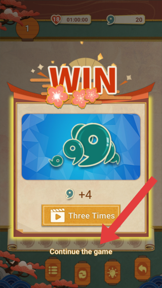 3、显示本关已通过,且再规定时间内完成,获得相对应的奖励,点击后方可进入下一个进行游玩。