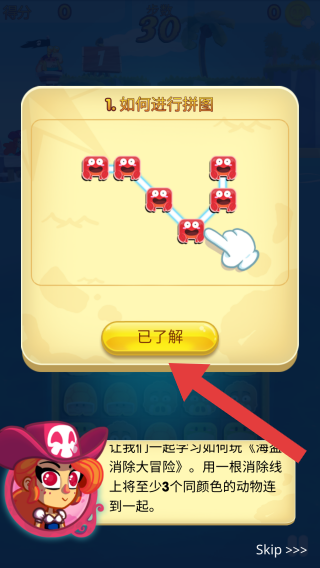 1、根据文字提示:如何进行拼图,画面呈现了教程动画,了解规则后可点击已了解进行操作。