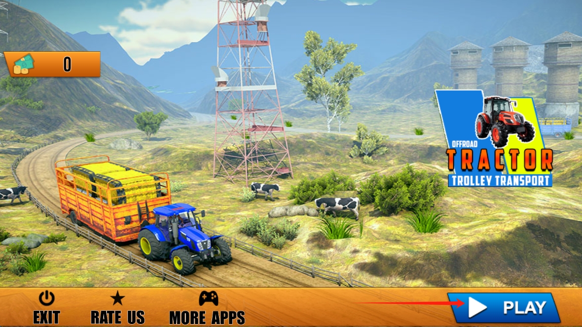 1、在Offroad-Tractor-Trolley-Transport界面,点击PLAY,开启越野拖拉机运输挑战。