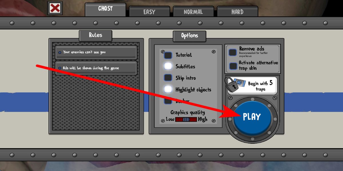 2、在设置界面,确认各项设置无误后,找到右下角的PLAY按钮并点击,此时游戏将正式开始,你将置身于充满挑战的场景中,开启紧张刺激的冒险之旅。