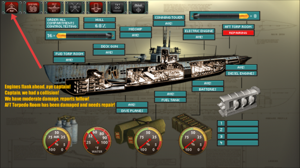 2、遇碰撞受损比如鱼雷室损坏,查看潜艇结构图,点击维修对应舱室,继续来查看设施来恢复的功能。
