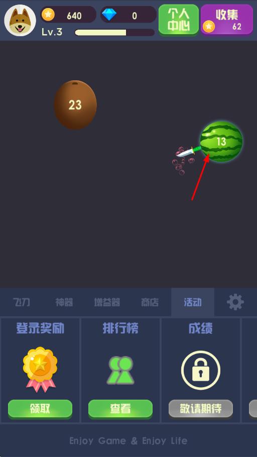 3、达成关卡分数目标即可通关,解锁新场景和难度模式,挑战更高切割速度与精准度,成为真正的飞刀达人。