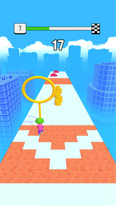 屋顶圈圈侠是一款跑酷类闯关作品,玩家在奔跑过程时不仅能在赛道上移动,还可借助手中的铁环套在长棍上滑行,同时需灵活躲避途中的各种障碍物,精准降落在对面平台上,避免掉落,需要一定的预判和操作技巧,且有道具助力闯关,玩家需尽可能快速抵达终点,整体充满挑战与乐趣,适合喜欢跑酷的小伙伴尝试。