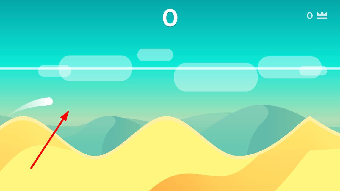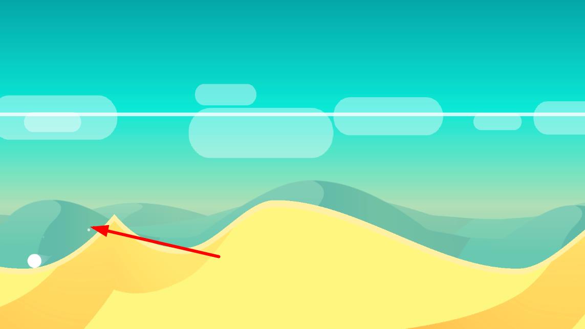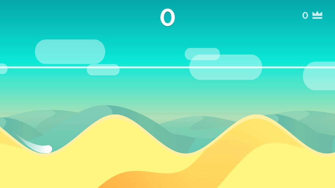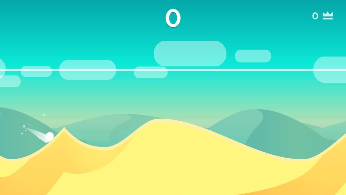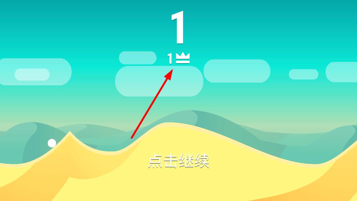1、进入游戏后,控制跳球从沙地起跳,尝试平稳飞过沙丘,顺利登陆沙丘表面即可获取基础积分,开启闯关之旅。