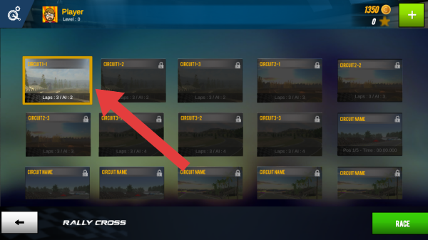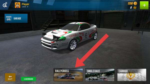 1、呈现了游戏初始的页面,下方有RALLYCROSS、SINGLERACE、CARRIER三个选项,可根据提示进行操作。