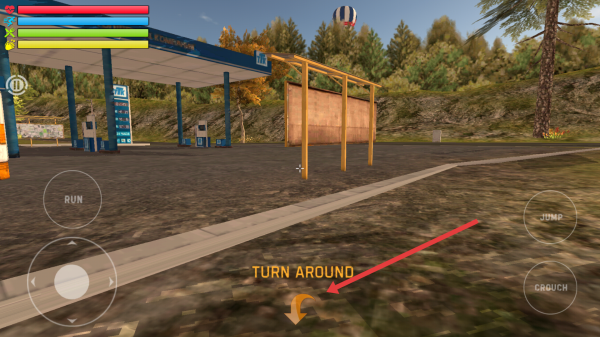 3、看到TURN AROUND的提示,操作摇杆转向,调整行进方向,继续探索小镇,完成任务的指引。