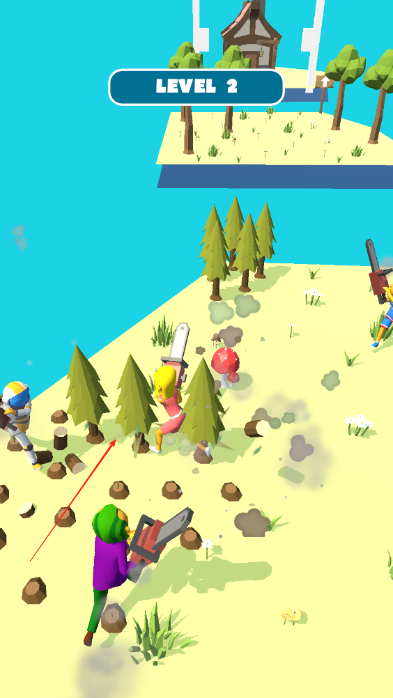 1、游戏开始后会匹配一堆玩家,将和我们共同抢夺树木资源,努力争夺树木资源且砍下即可。