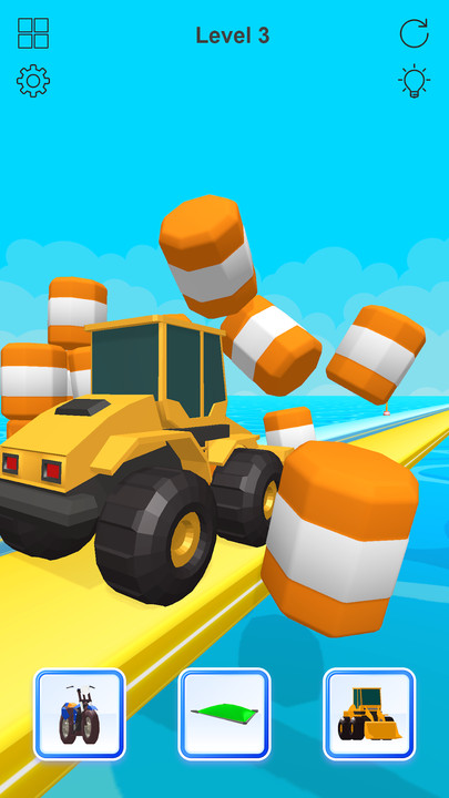 2、百变赛道设计:关卡中包含城市街道、山地陡坡、沙漠戈壁等多样赛道,每个赛道设有独特的障碍物和地形陷阱,考验玩家对座驾的掌控能力和应变速度。