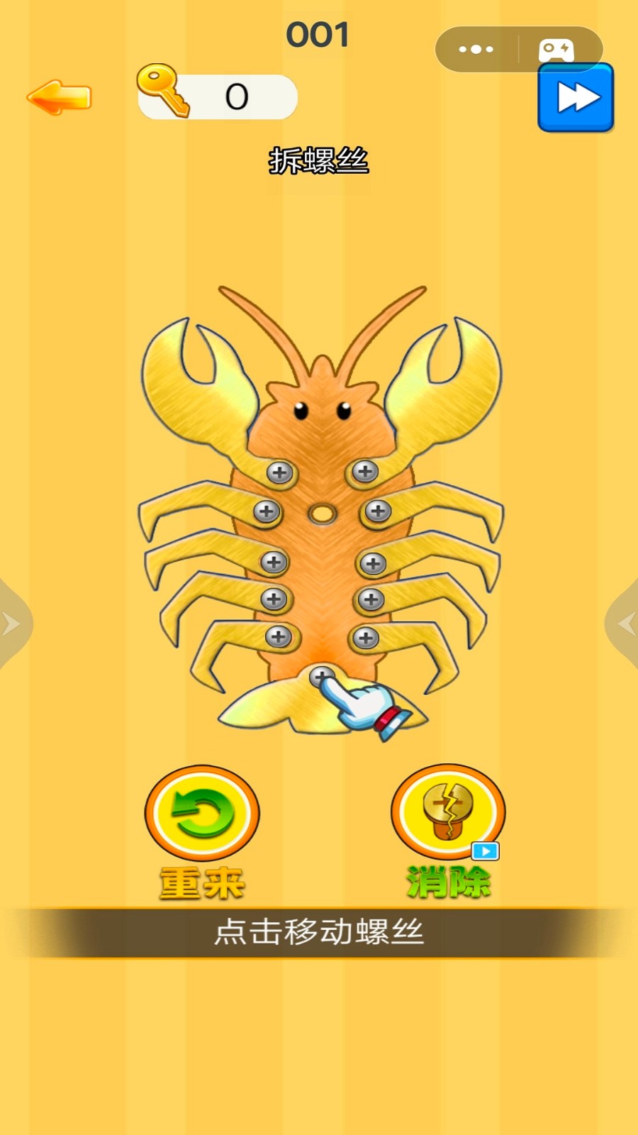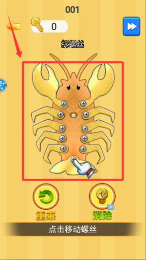 1、采用触屏滑动控制螺丝旋转,单指操作即可完成所有交互,但需通过长按、轻扫等不同手势调节旋转精度。