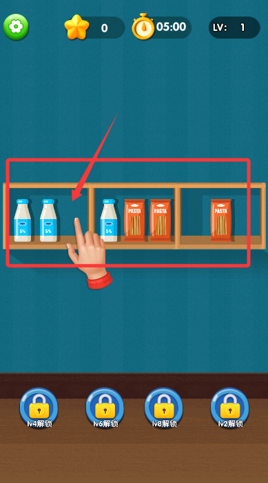 3、按照教学提示,快速找出相邻的同类商品,通过匹配完成收纳任务。
