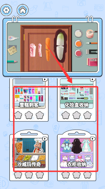 2、从整理模式中,选择"化妆盒收纳"玩法,开启梳妆台收纳大作战。