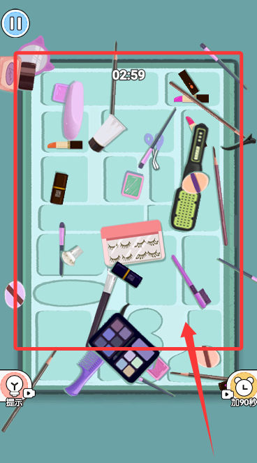3、在规定时间内,将散落的彩妆产品分类摆放,完成整洁度挑战。