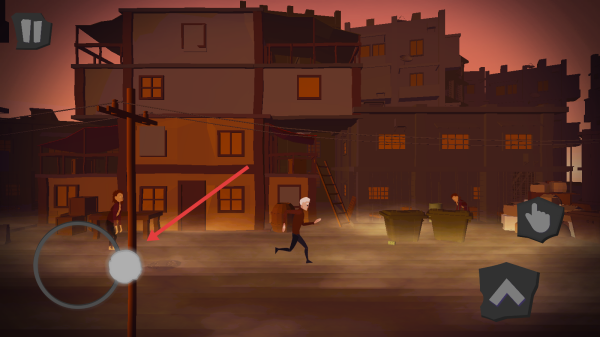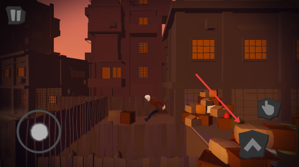 2、左侧虚拟摇杆控制移动,右侧按钮操作互动,如攀爬、翻越,跟随指引躲避危险、寻找线索。