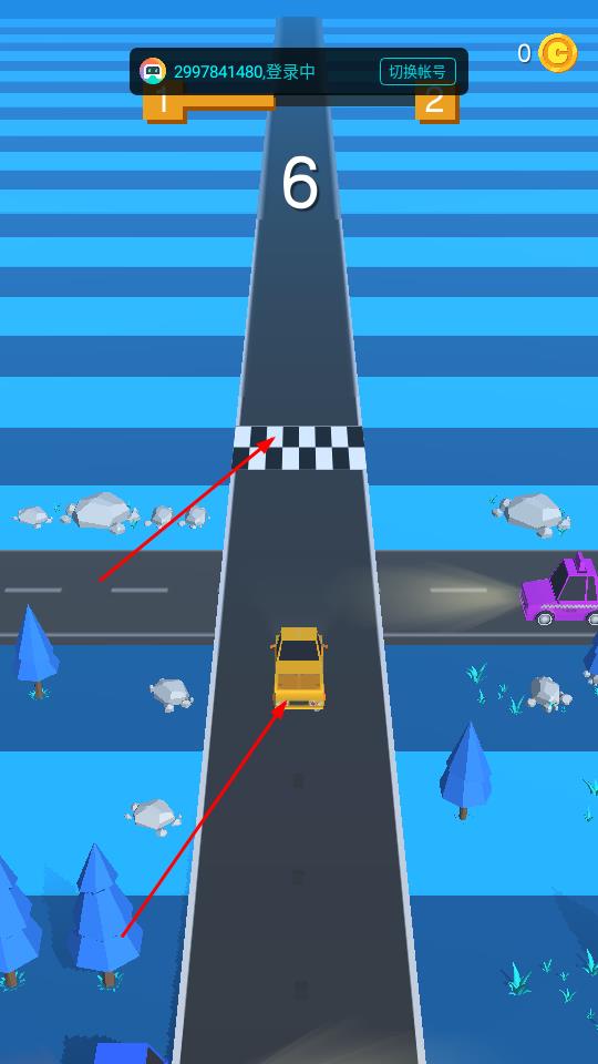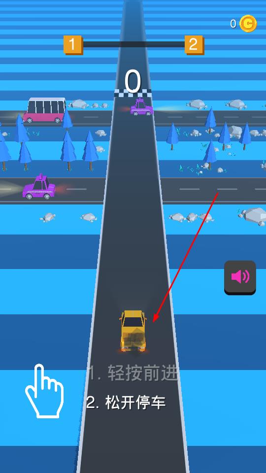1、进入游戏后,轻按屏幕使汽车前进,松开屏幕让汽车停车,掌握行驶节奏开启挑战。
