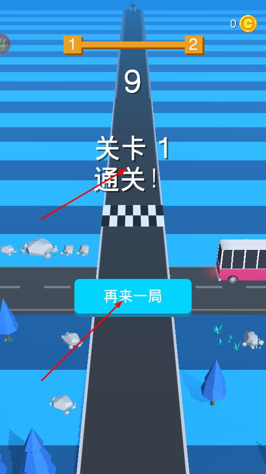 3、成功到达终点后,点击再来一局按钮,即可开启新的关卡挑战,延续游戏乐趣。