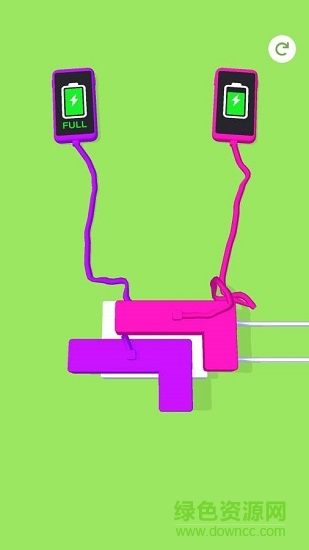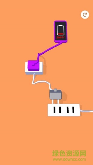 充电模拟游戏。游戏中,玩家要将所有充电器插在线板上,顺利的将手机充满电并完成关卡。