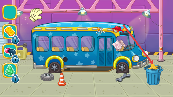 3、继续解锁吹风机等工具之后,再处理外面顽固的污渍,完成巴士清洁,推进关卡完成,解锁新的任务。