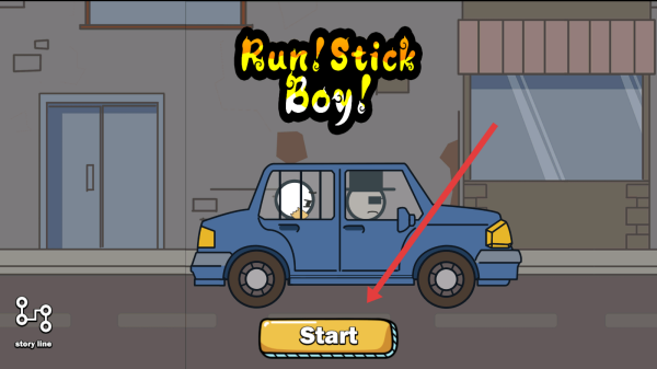 1、在Run!Stick-Boy!游戏界面,点击黄色Start按钮,进入火柴人逃亡的冒险关卡,开启挑战之旅。