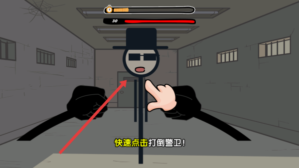 2、关卡内出现警卫,按照提示快速点击屏幕,操控角色攻击警卫,努力突破阻拦继续逃亡进程。