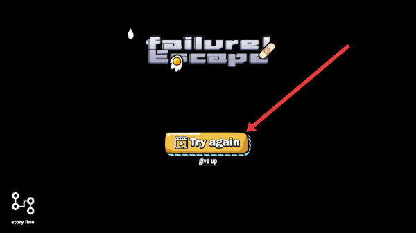 3、若挑战失败,界面显示failure!Escape,点击黄色Try-again按钮,重新进入游戏,再次尝试完成逃亡任务。