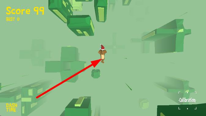 2、操控戴帽狮子角色,在下落过程中躲避绿色方块,保持移动,通过灵活转向避开障碍,积累分数。