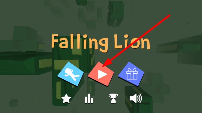 1、打开Falling Lion游戏,点击红色三角形播放按钮,开启狮子下落冒险,准备在绿色方块场景中挑战。