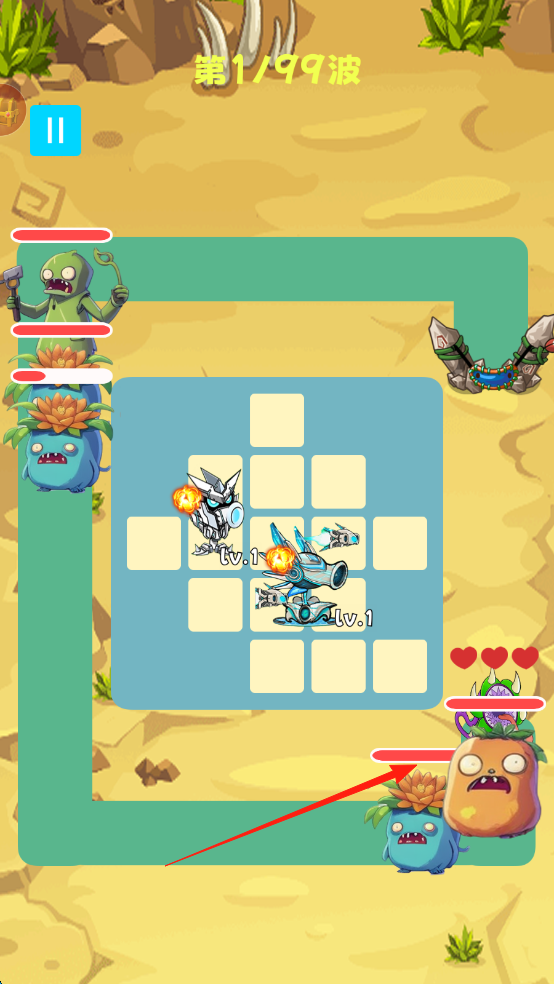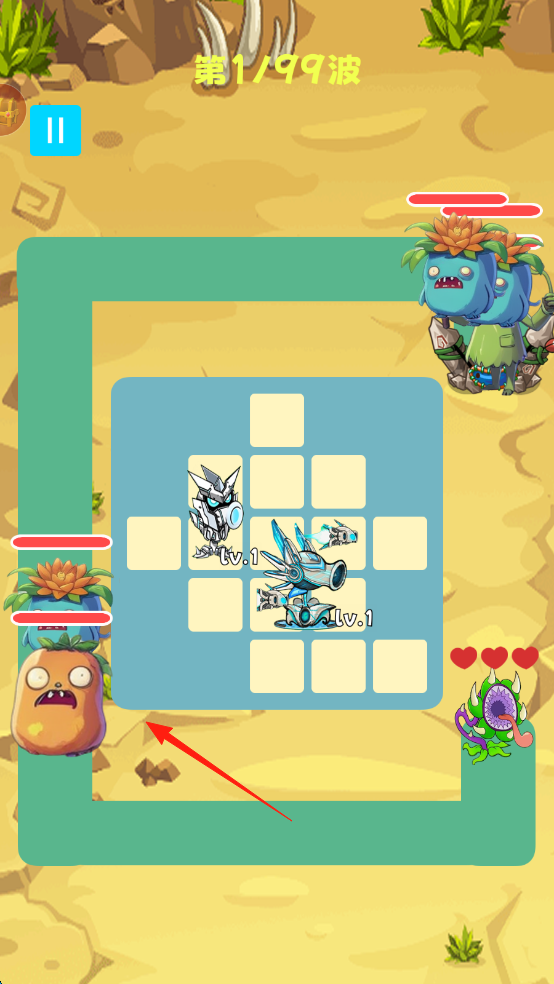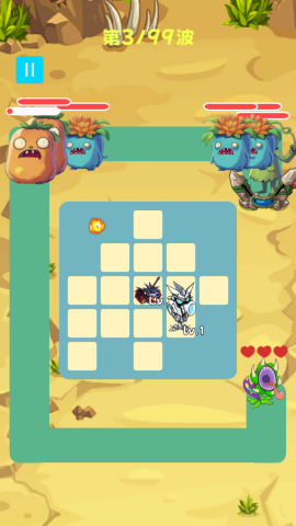 3、每波怪物进攻后,准备迎接下一波,根据怪物类型调整塔防策略,确保爱心血量不耗尽,坚持到第99波,完成关卡挑战。