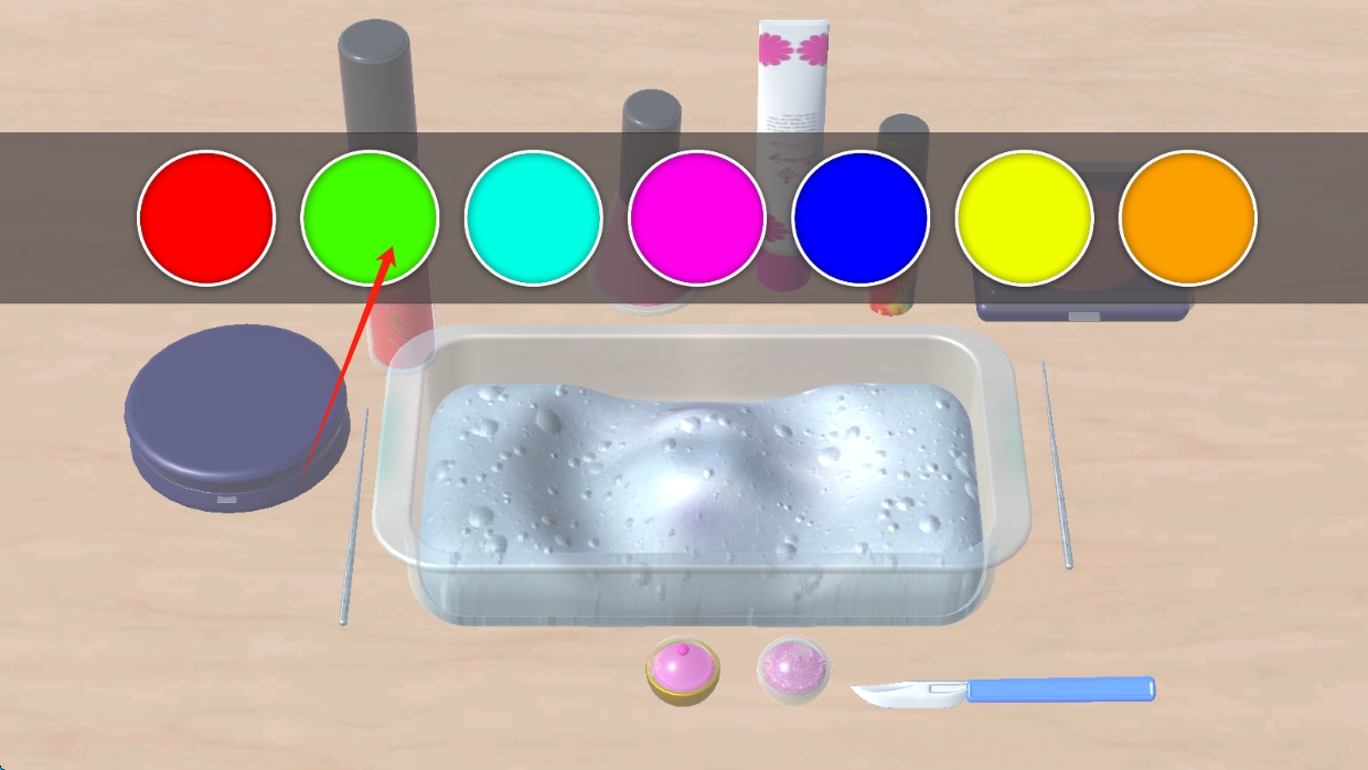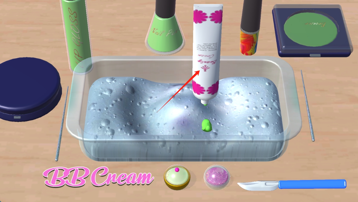 3、指尖互动完成创作:通过点击屏幕控制搅拌、按压等动作,用指尖操作完成彩泥的塑形与修饰,在简单的互动中享受创作的乐趣,解锁更多美妆的品类。