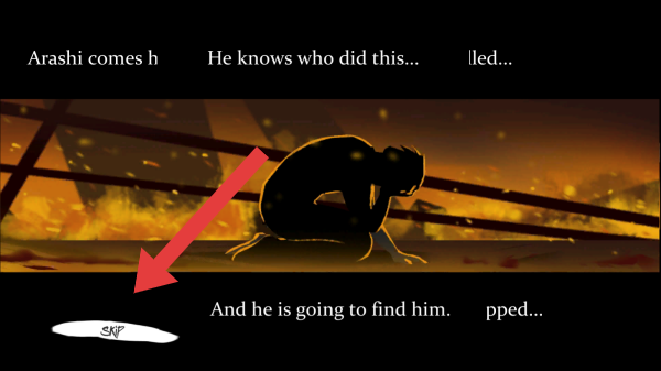 1、画面呈现了动画的场景,玩家可以进行观看次动画,也可以点击左下角的SKIP跳过次剧情。