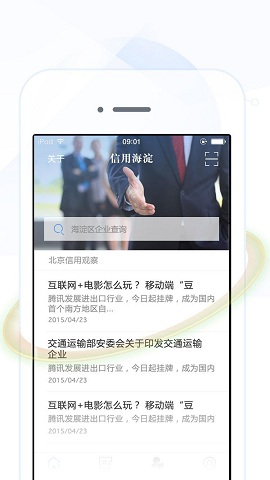 此外,该APP还推送海淀信用观察资讯信息,并有名片保存功能,可轻松将信息收藏与分享。