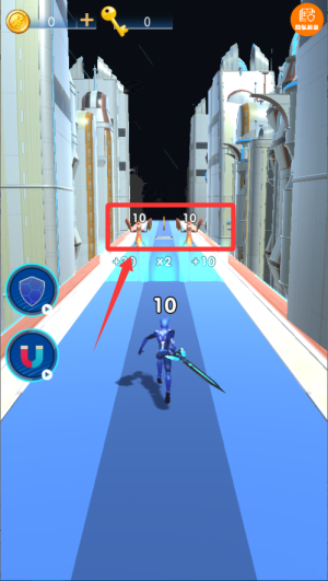 1、基础操作为跑酷移动结合武器攻击,通过滑动屏幕实现跳跃、闪避等动作,点击按钮发动攻击,简单直观但富有深度。