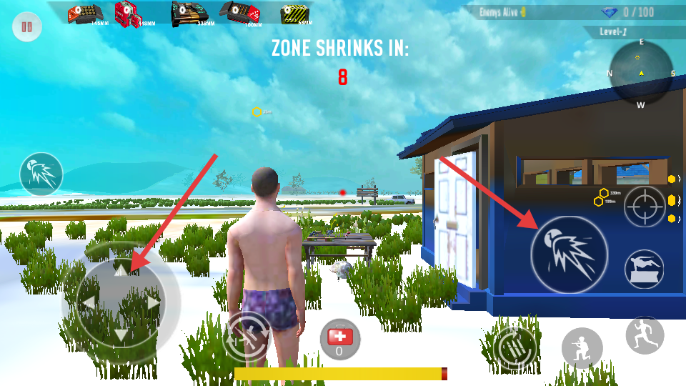 1、跳伞选择资源点降落,快速搜集防具武器与医疗物资。