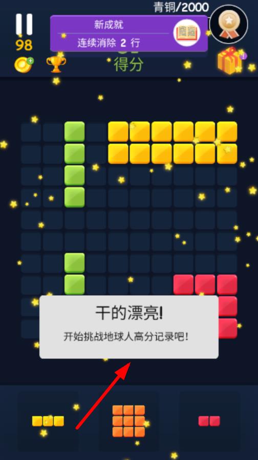 2、多行消除策略:观察方块形状与位置,尝试同时消除两行或多行,利用方块下落的连贯性形成连击,快速积累分数。