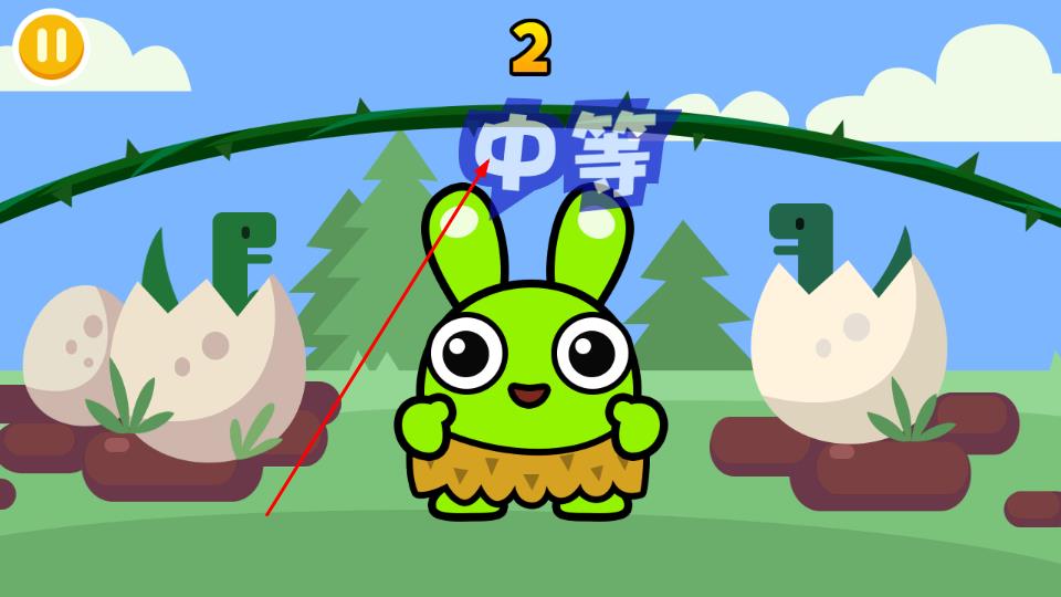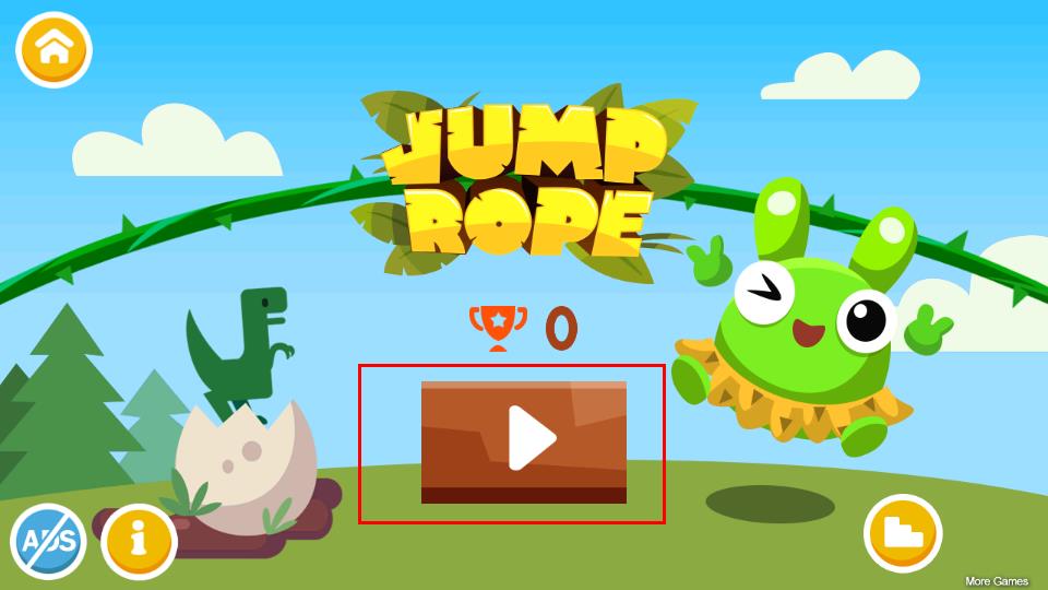 1、在主界面点击棕色播放按钮,进入游戏,绿色角色自动开始跳绳,上方数字实时显示跳跃次数如2、6,同步积累奖杯数。