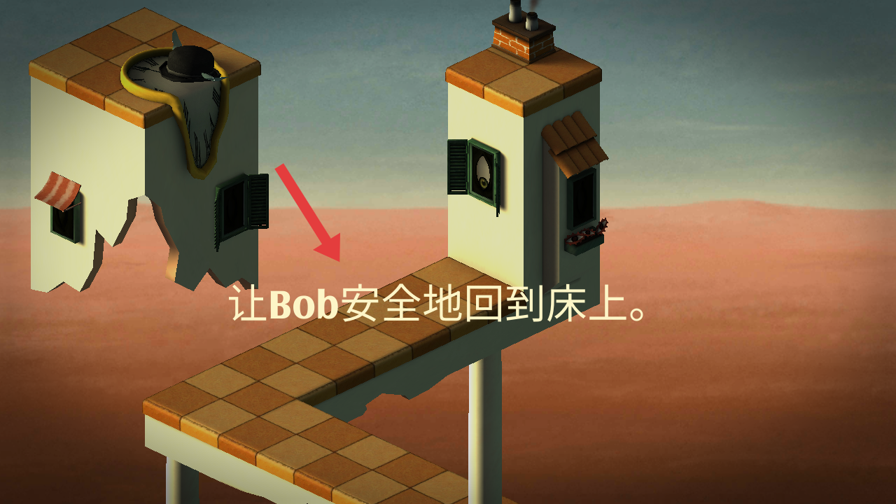 2、明确核心目标,操控角色Bob的潜意识,穿越这些建筑场景,安全抵达最后床铺的位置,完成关卡任务。
