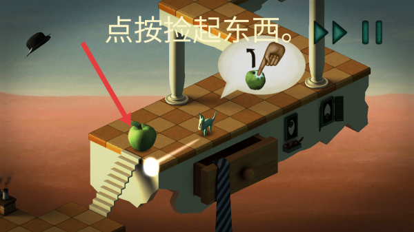 3、根据系统的指引,点按绿色苹果,触发拾取物品机制,拾取苹果用于后续帮助Bob规划正确的路线。