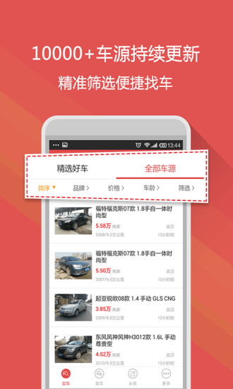 海量二手车源,设定车型、价格、车龄、里程等条件搜索车源更快更精准;