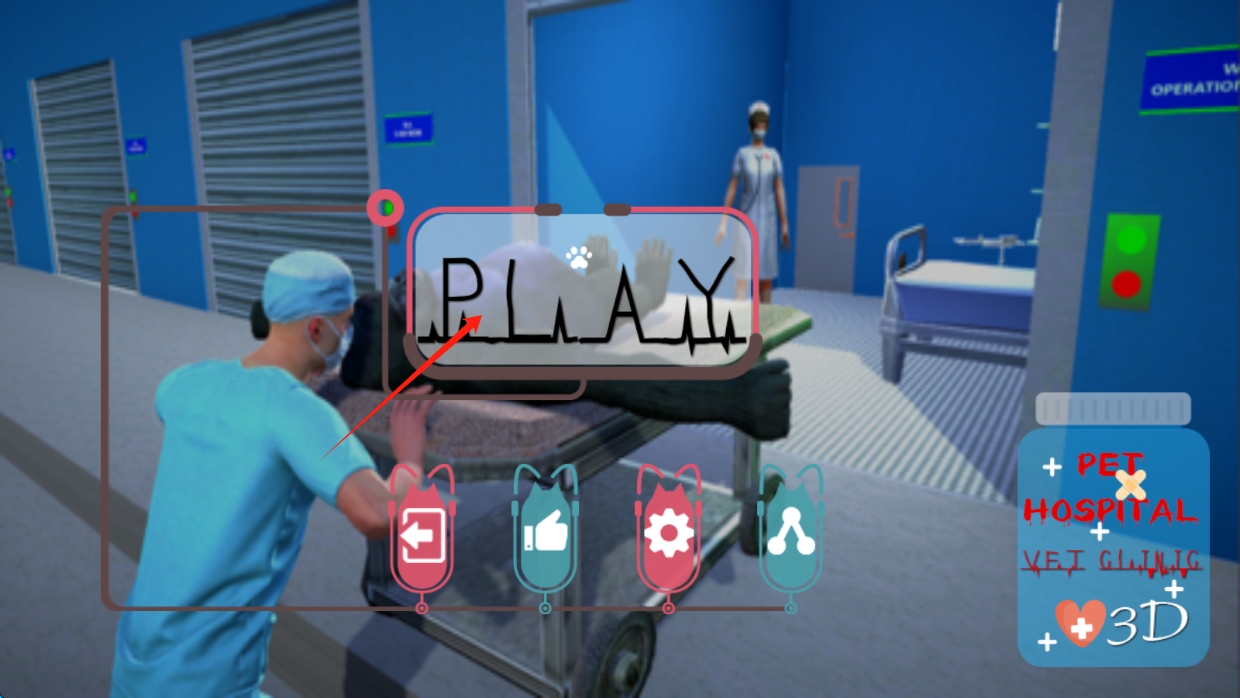 1、在Pet-Hospital-Vet-Clinic-3D界面,点击PLAY,开启宠物医院冒险,点击进入游戏。